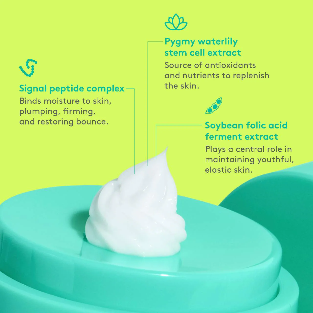 Ahora rellenable (¡y reutilizable!), esta crema hidratante proteica combina péptidos señal, factores de crecimiento, aminoácidos y nenúfar pigmeo para mejorar el tono, la textura y la firmeza de la piel.