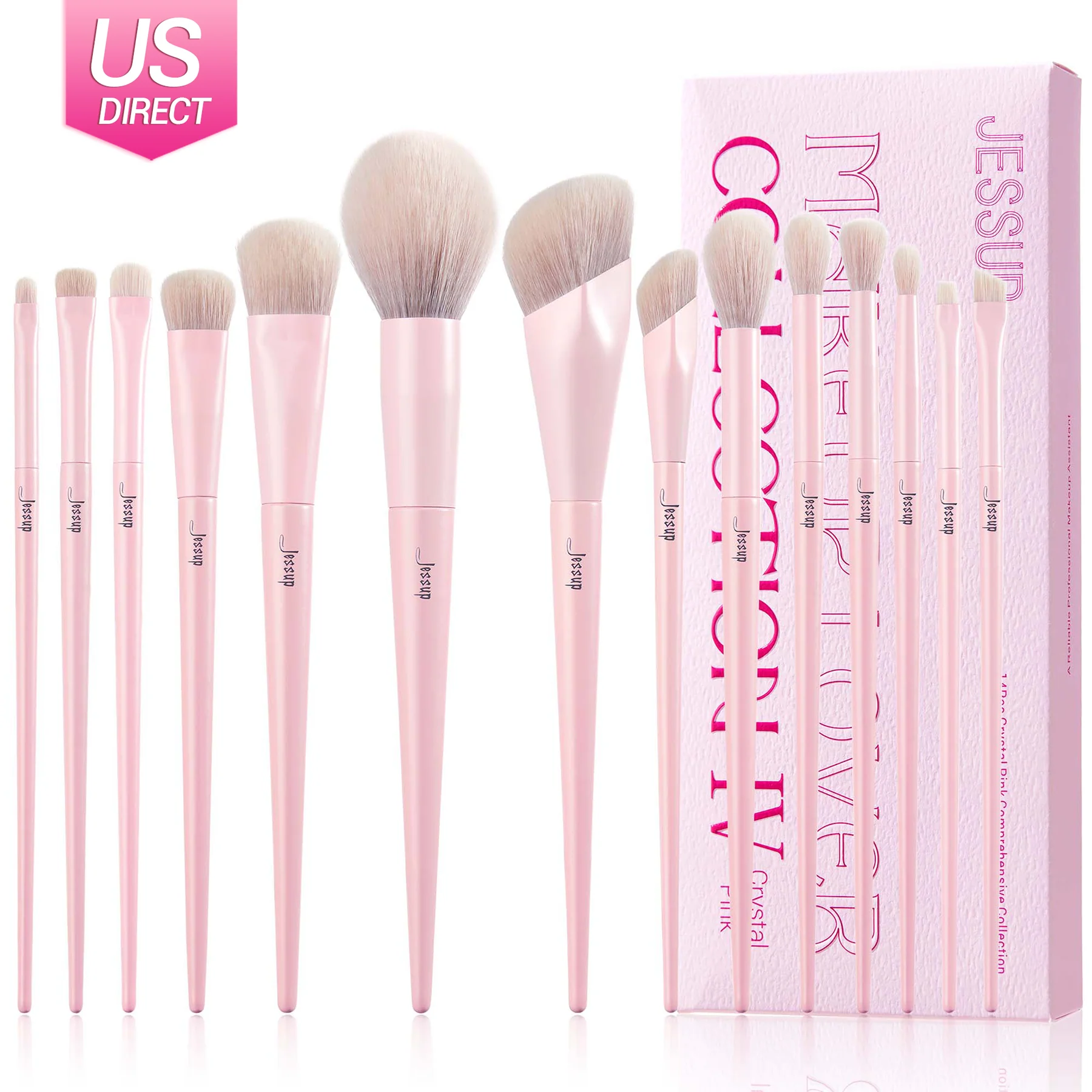Jessup Crystal Pink Makeup Brushes Set Premium Vegan T495