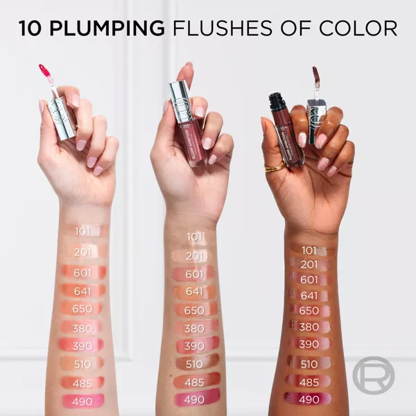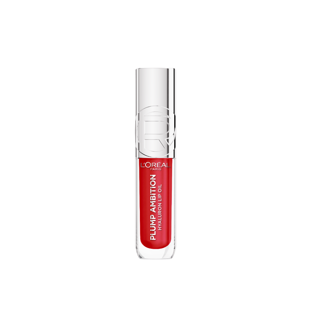 NUEVO Plump Ambition Hyaluron Lip Oil, enriquecido con ácido hialurónico y tripéptidos. Disponible en 9 hermosos tonos con un acabado brillante como el cristal.
