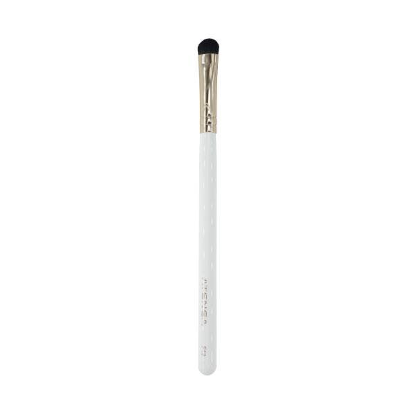 Brocha de maquillaje plana para aplicar sombras, glitter o pigmentos en el párpado móvil, su forma nos ayuda a tener mejor pigmentación. Lavar las brochas
