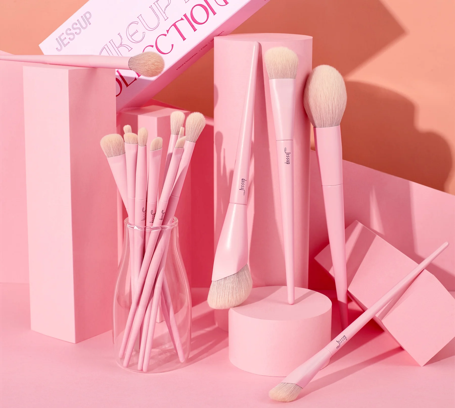 Jessup Crystal Pink Makeup Brushes Set Premium Vegan T495