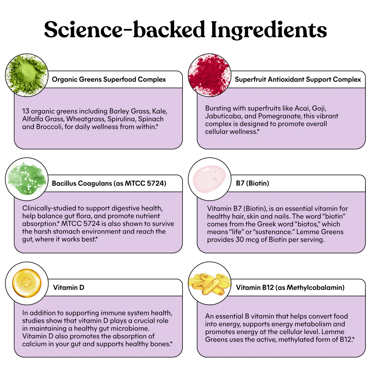 Formulado con más de 20 verduras y superfrutas, vitamina D3 y B12 metilada para un bienestar diario. Además, probióticos clínicamente estudiados que favorecen la salud intestinal, combaten la hinchazón y promueven un microbioma intestinal saludable.*