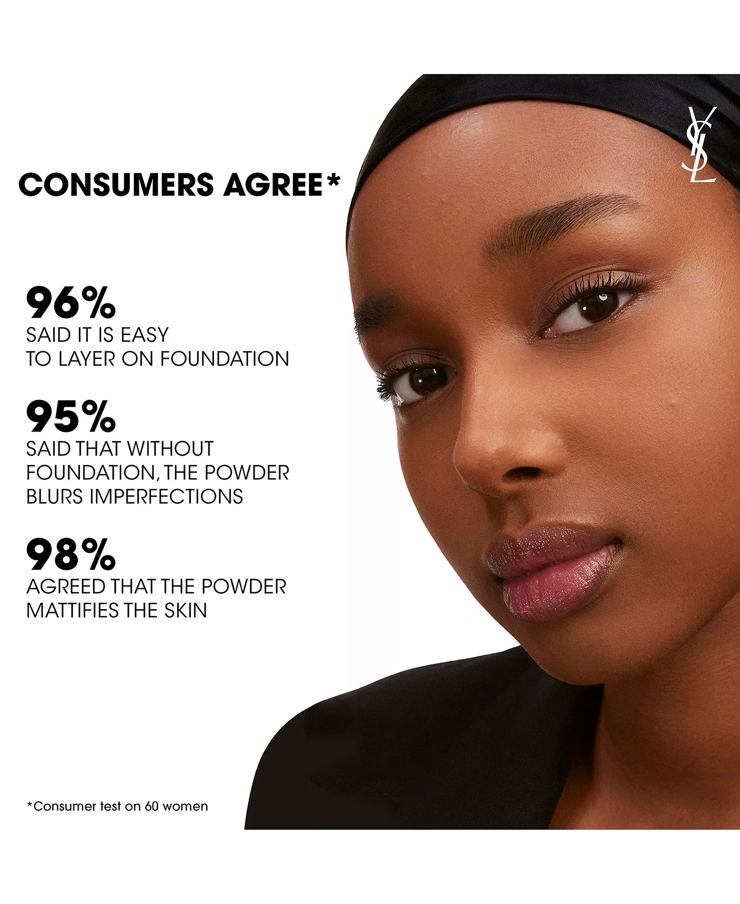 El 90 % estuvo de acuerdo en que el polvo deja un acabado impecable sobre la piel desnuda*.